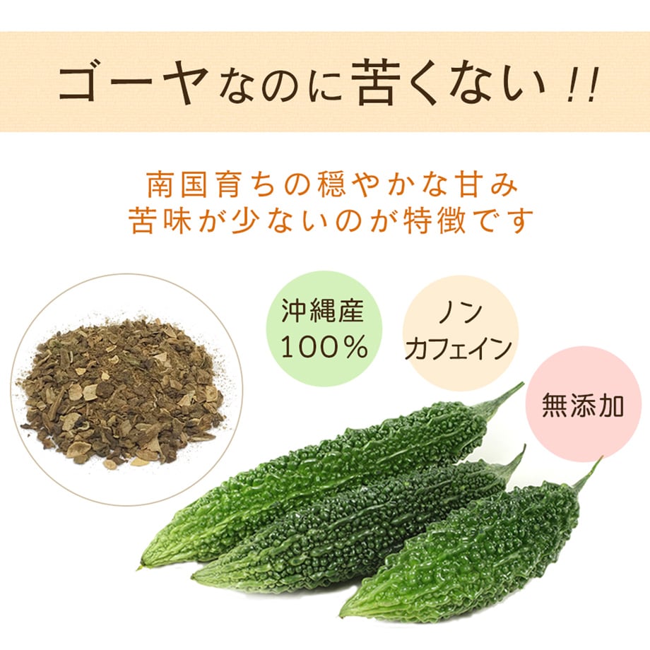 当店のゴーヤ茶は、沖縄産100%です。沖縄の豊かな自然の中で育ったゴーヤをそのままに、健康茶用に丁寧に仕上げました。ゴーヤなのに、苦くない!!南国育ちのおだやかな甘み、苦みが少ないのが特徴です。