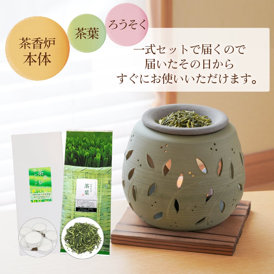 【特徴】すぐに始められるように、茶葉とローソク付です